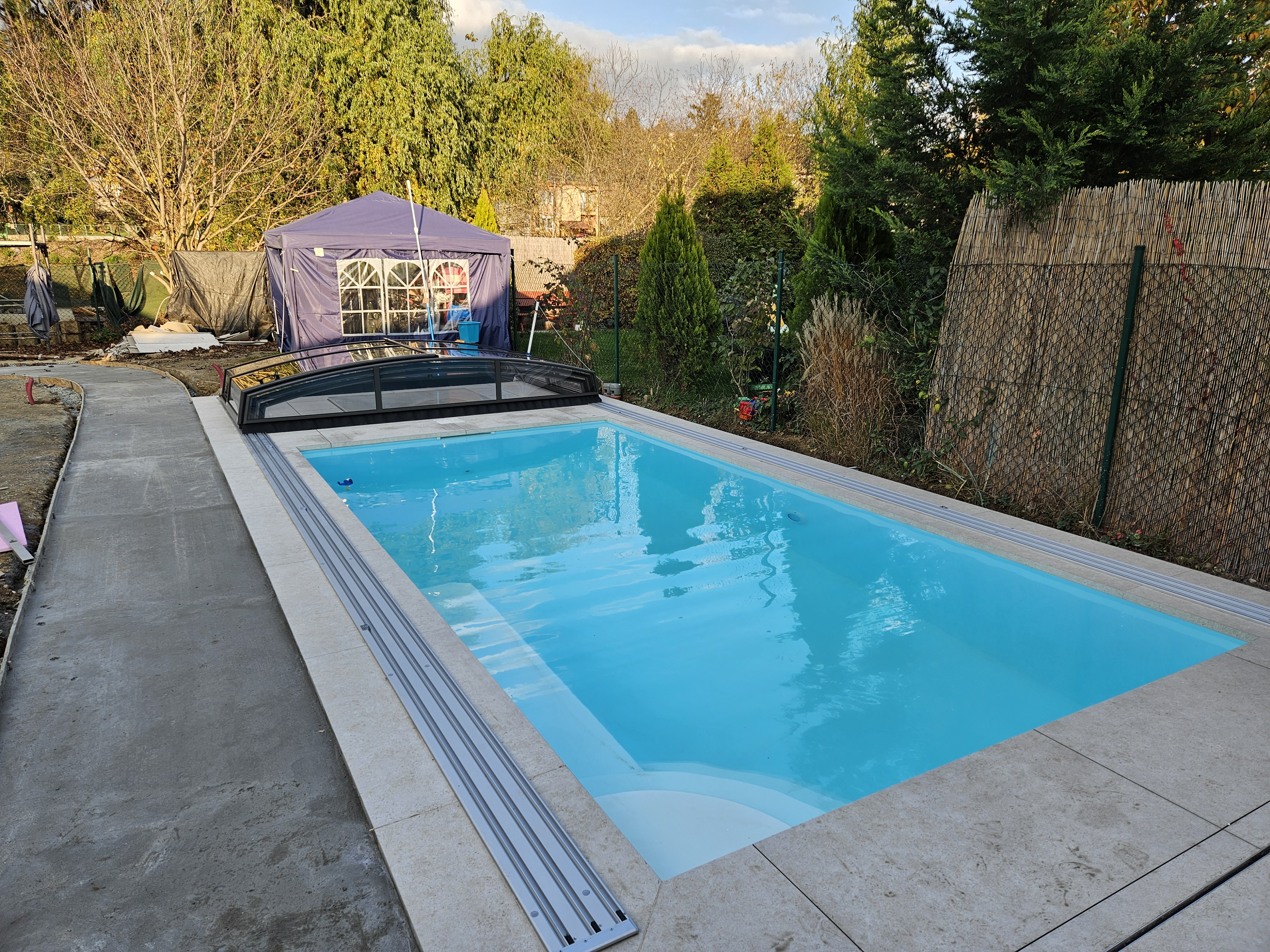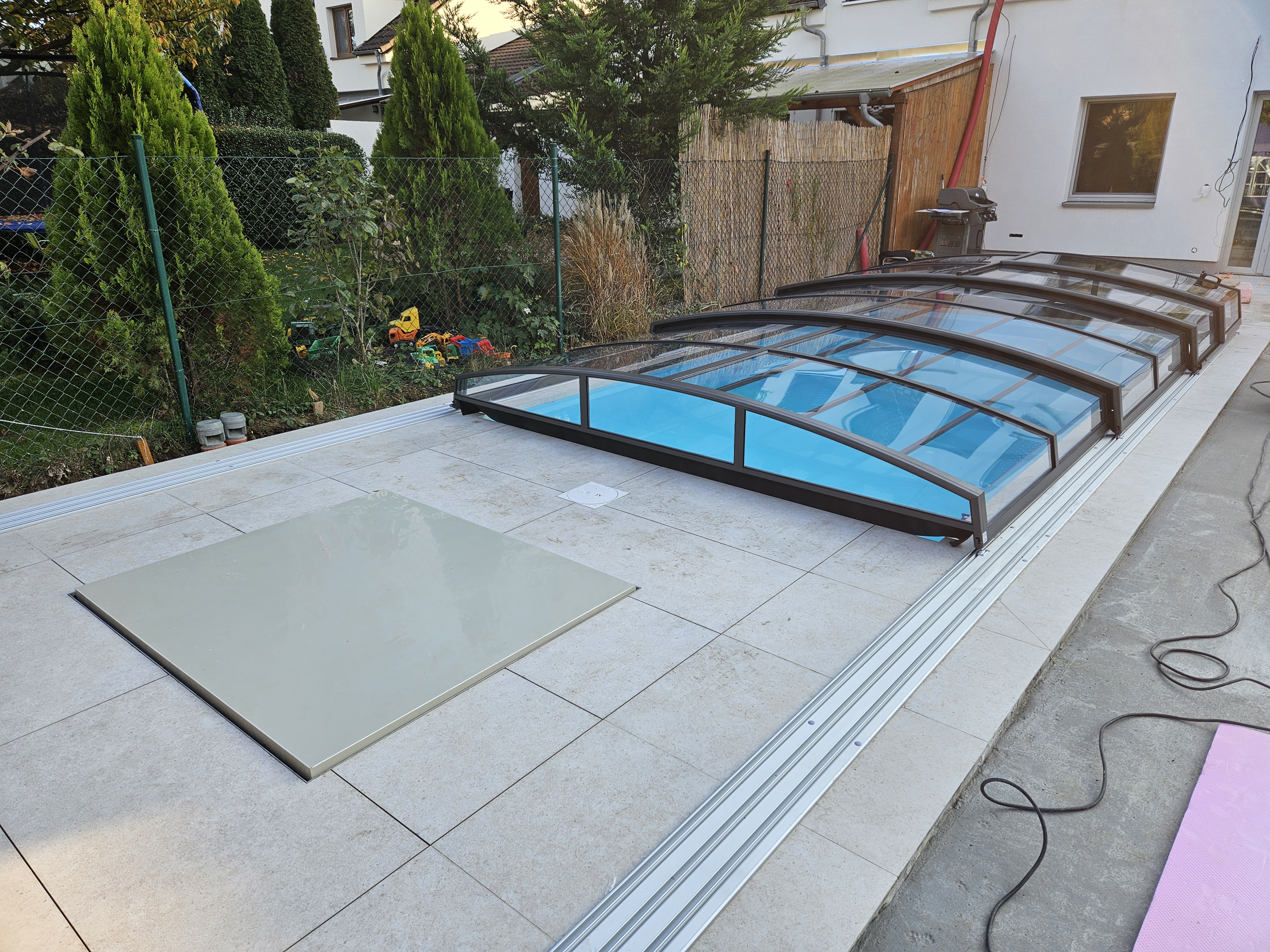 Dnes máme na zahradě zabudovaný bazén, který skvěle ladí s okolím. Manželka v něm plave každý den, je nadšená. Já mám díky pracovnímu vytížení zatím méně času, ale jsem rád, že všechno funguje, jak má, bez starostí a můžu bazén kdykoliv využít, když přijdu z práce.