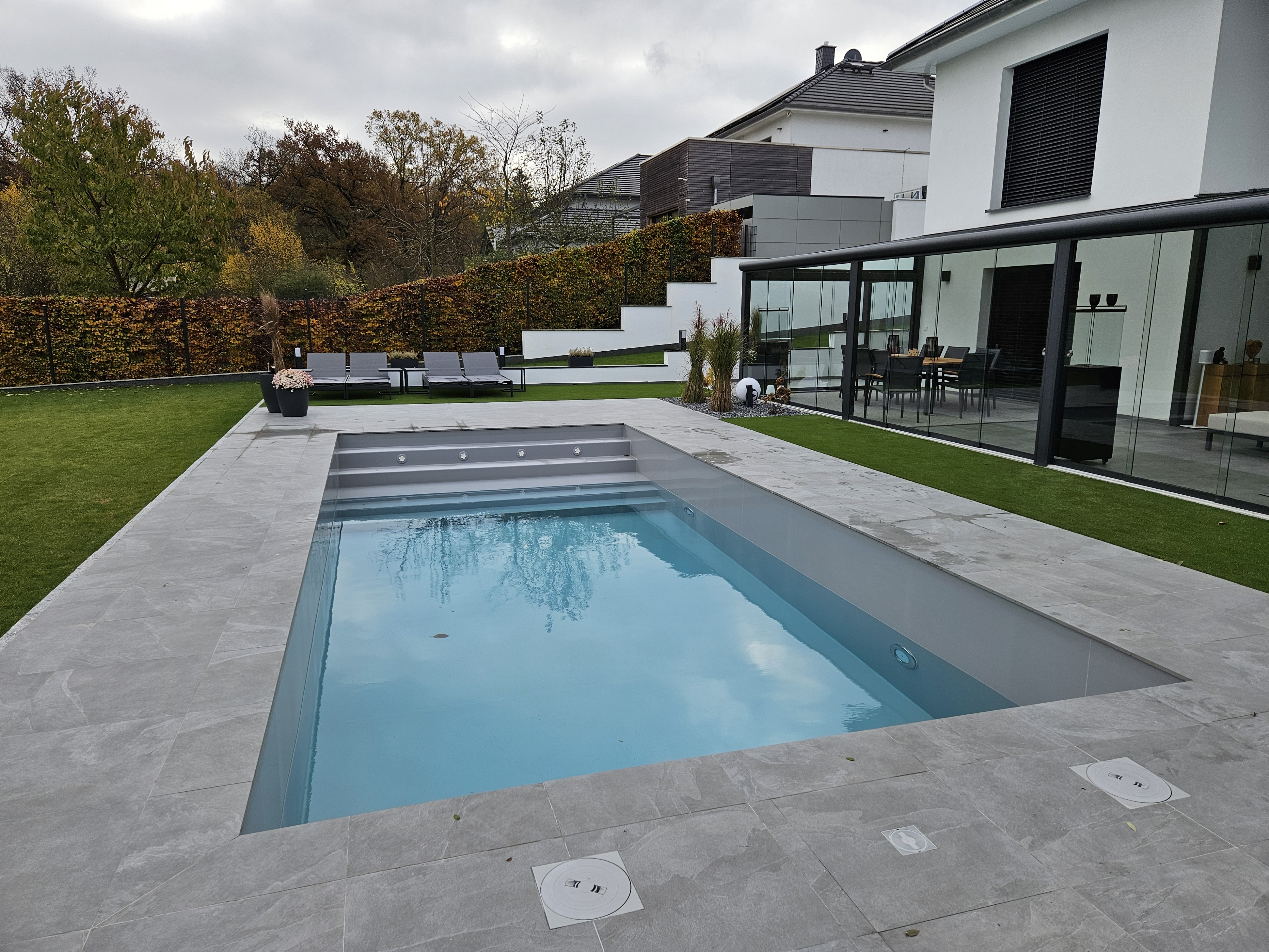 Bazén nám výrazně zvýšil životní úroveň. Používáme ho nejen v létě, ale i v zimě, v kombinaci se saunou. Je to velký kus pohodlí, který nám každý den přináší radost.