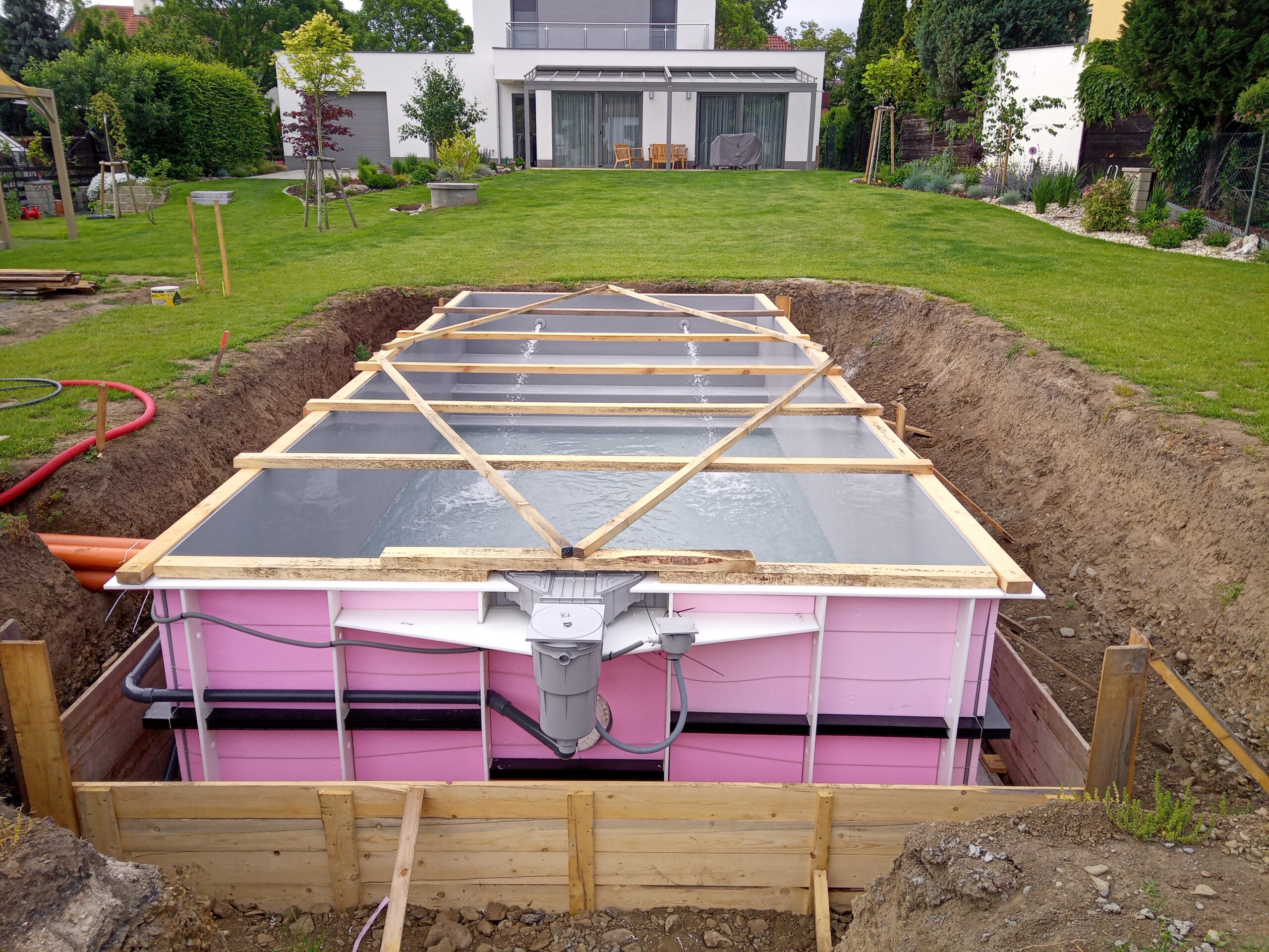 Navzdory krizi s koronou, proběhla výstavba bazénu dobře… Protože máme děti a velký pozemek v Berlíně, dohodli jsme se s manželkou, že postavíme bazén.